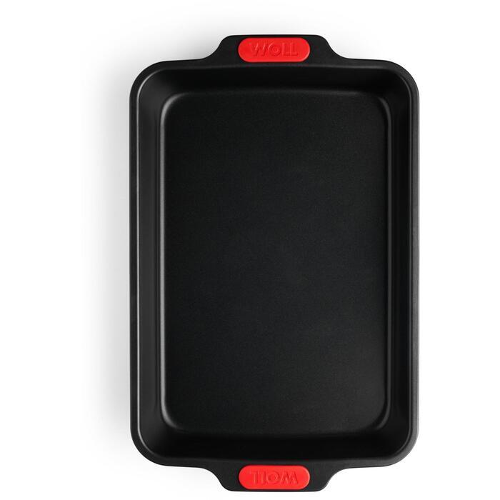 Rektangulær langpanne fra Woll som har en jevn varmefordeling og har en lang levetid. Formen er laget av korrosjonsbestandig aluminert stål og har varmebestandige silikongrep som gir godt og sikkert grep når den skal håndteres.