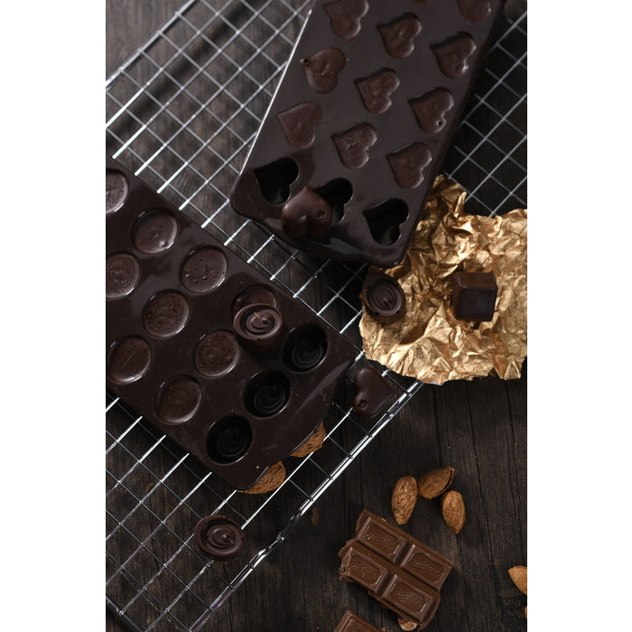 Silikonform til egen sjokoladeproduksjon. Kan også brukes til isbiter.
