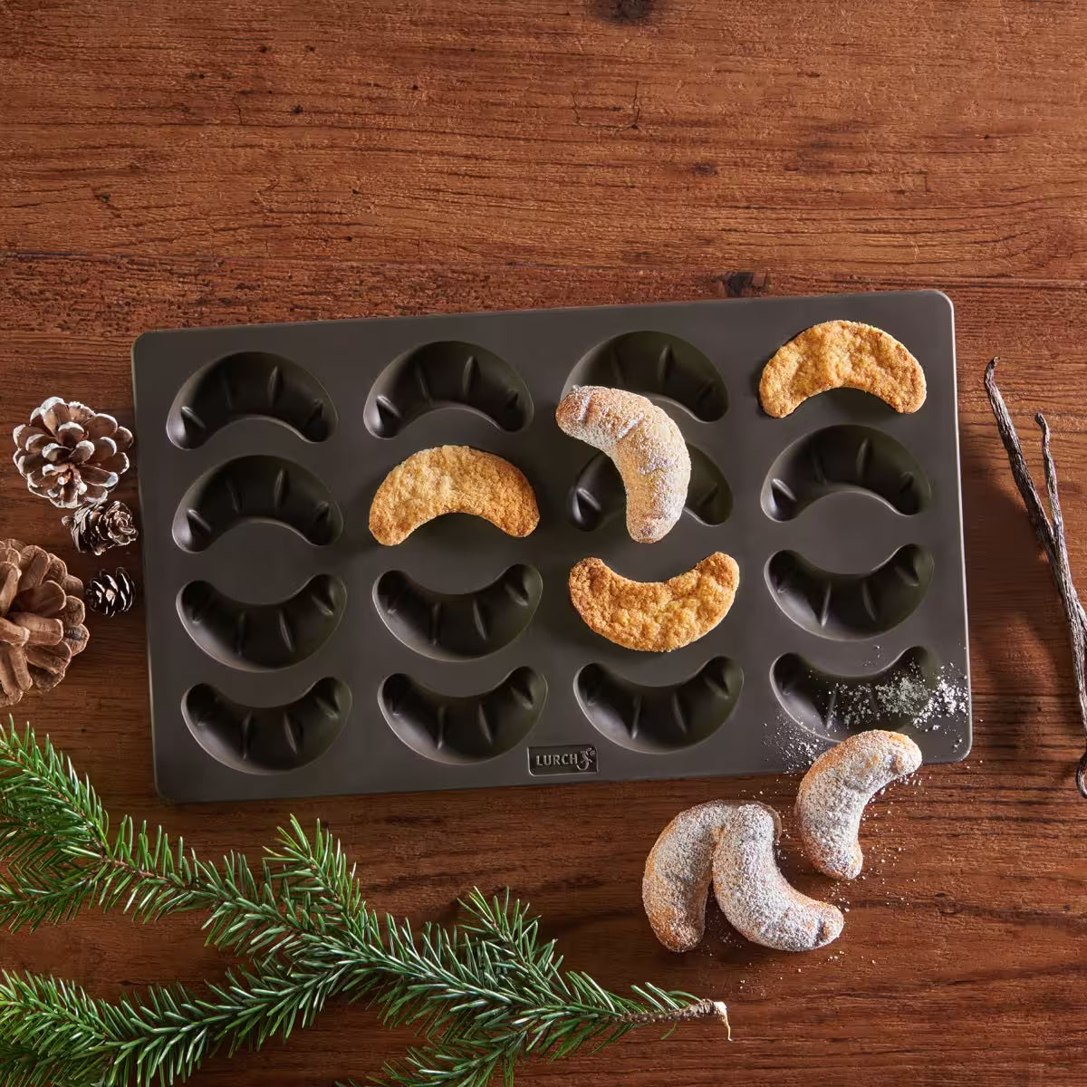 Denne formen i platinasilikon gir 16 stk småkaker i halvmåne-form. Fungerer også utmerket til sjokolade! Formen har non-stick effekt som slipper bakverket lett og er helt smaksnøytral.