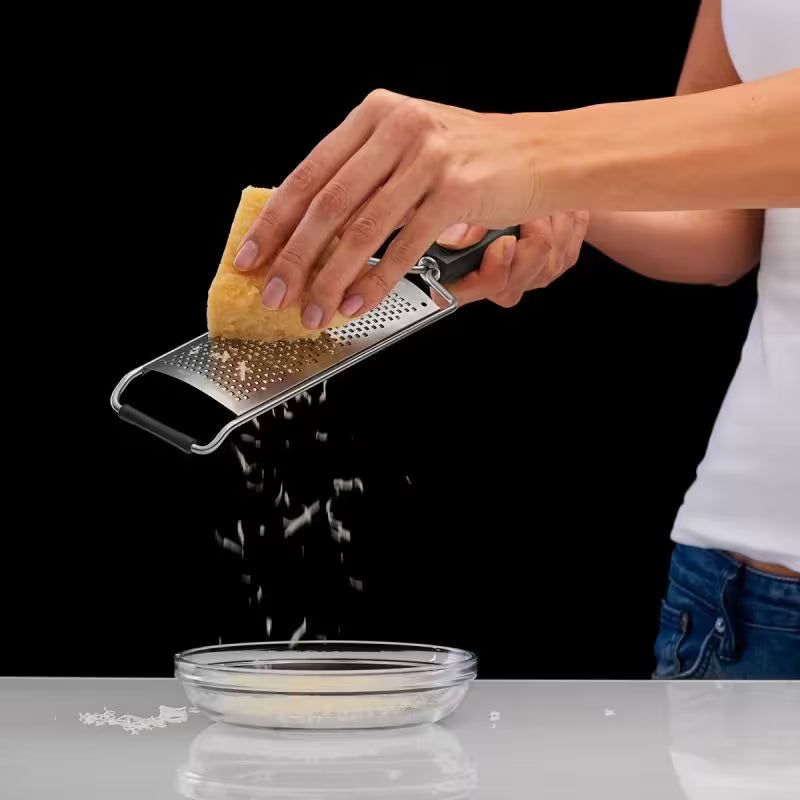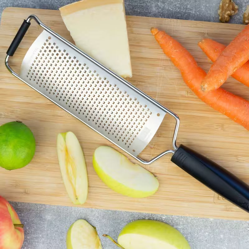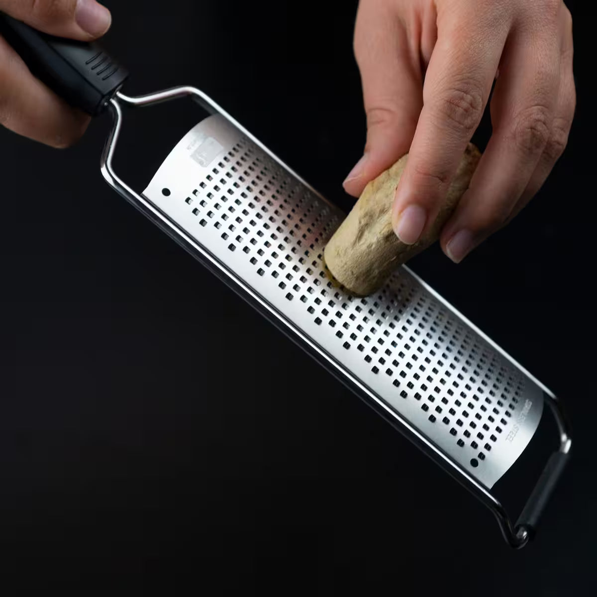 Et fint, bredt rivjern som egner seg når du for eksempel skal rive harde oster, nøtter, sjokolade, hvitløk eller ingefær.