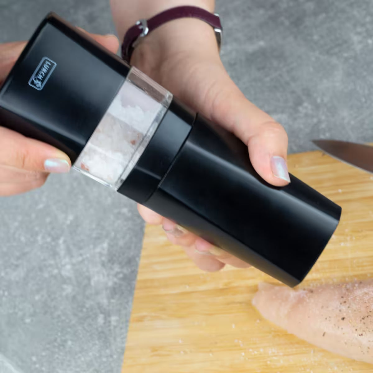 En trinnløs justerbar, keramisk saltkvern fra tyske Lurch. Den skarpe RazorTech-skjæreskiven sørger for ekstra fine riv, uten unødig søl.